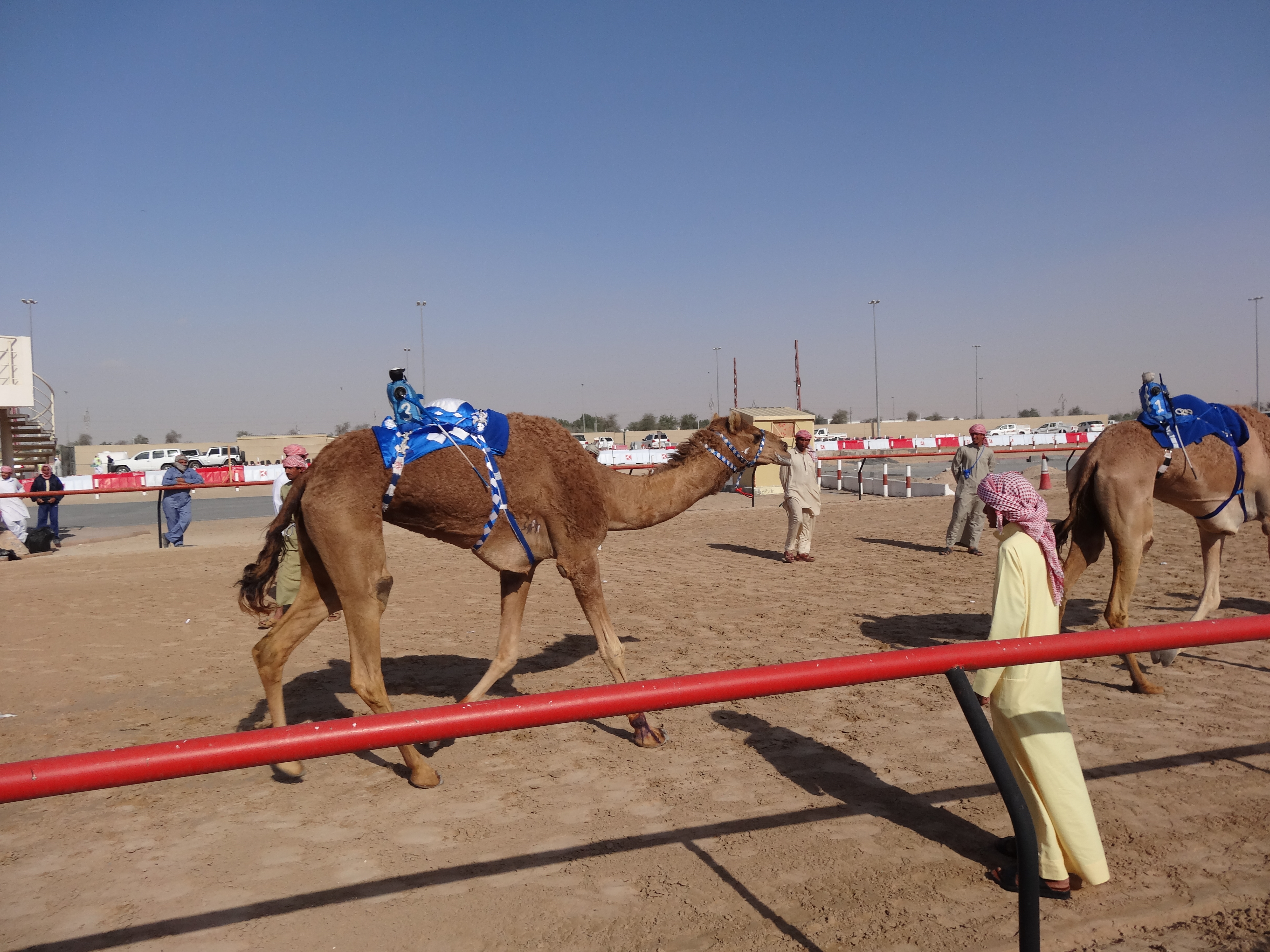 Here is a picture of the robotic jockey. Each camel had one strapped to its back, and it would randomly tap the camel with the attached crop. It was quiet ridiculous looking.